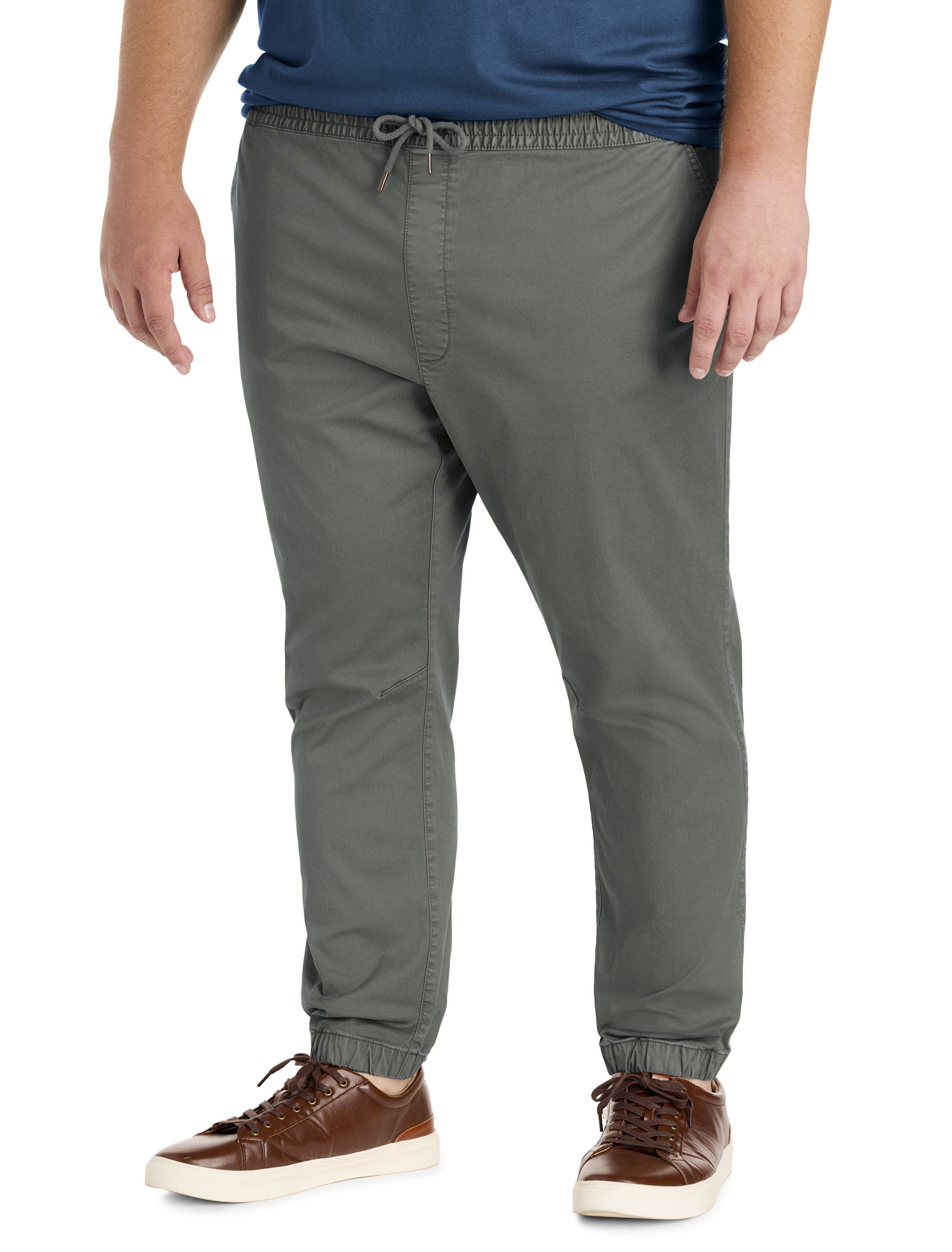 Consider these your new, everyday-favorite joggers. Designed at DXL with precise proportions and an ideal fit for Big and Tall guys, the slim-fit style sits below the waist is narrow from the thighs through the leg openings. Crafted with sustainable TENCEL™ Lyocell for an eco-conscious environmental footprint, they're supersoft, comfortable and easy to wear with an elasticized waistband for extra comfort. A variety of pockets, including a hidden media pocket at the right side, keeps your belongings close at hand.