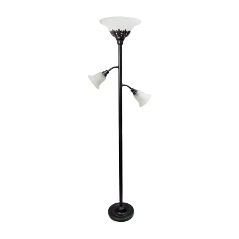 All the Rages Lalia Home Scalloped Glass Shades With 2 Reading Lights Torchiere Floor Lamp