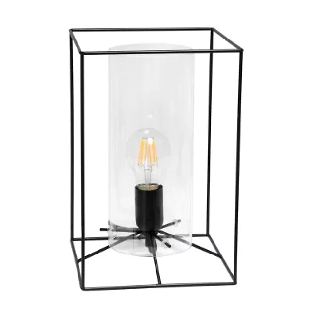 All the Rages Simple Designs Encased Metal And Clear Glass Table Lamp