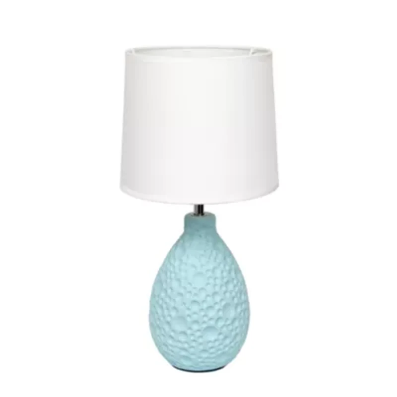 A charming and practical table lamp to meet your fashion lighting needs. This lamp features an oval textured stucco ceramic base and a white fabric shade. Perfect for living room, bedroom, office, kids room, or college dorm!