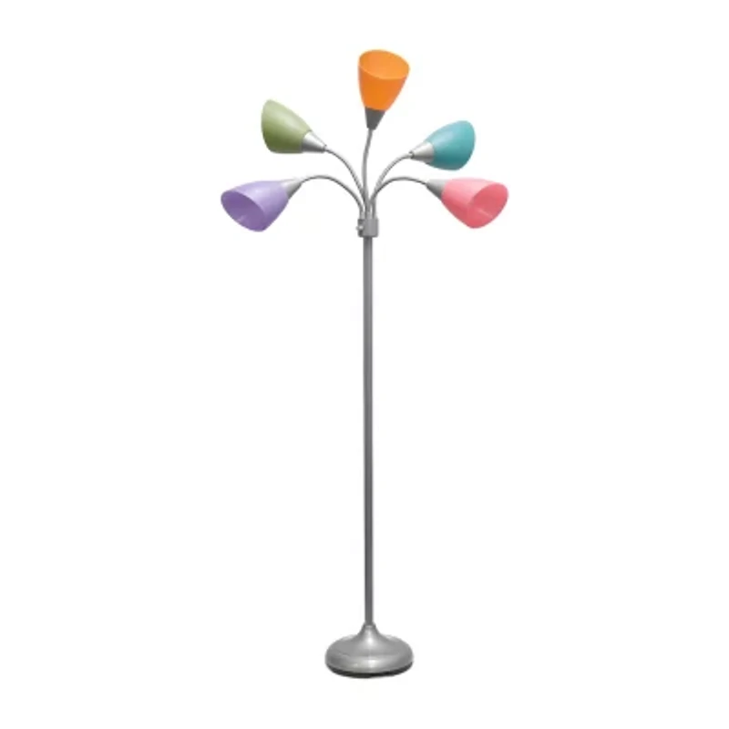 All the Rages Simple Designs Silver 5 Light Adjustable Gooseneck Floor Lamp