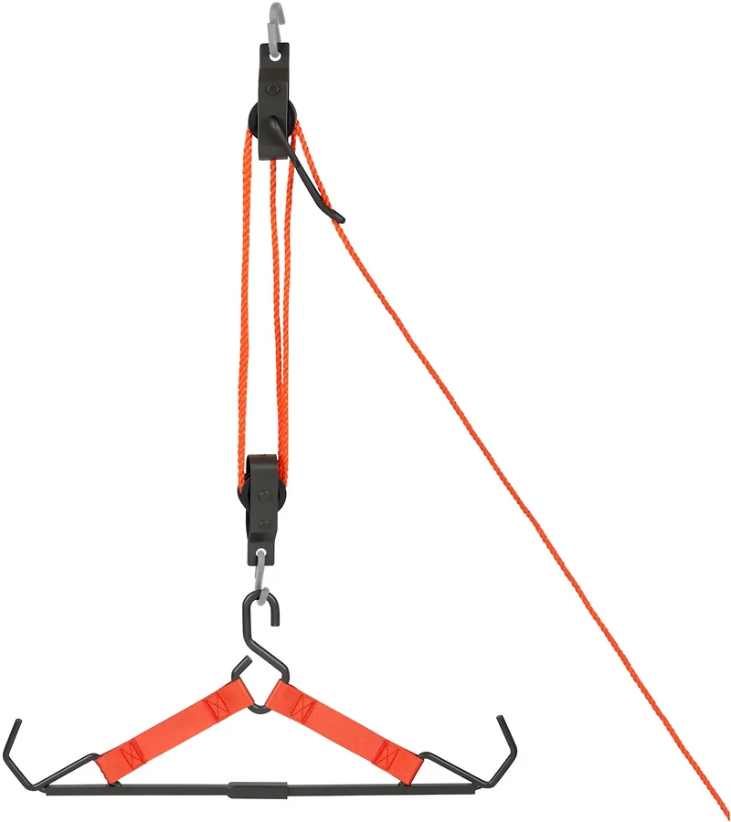 - 2 pulleys help lift and lower game