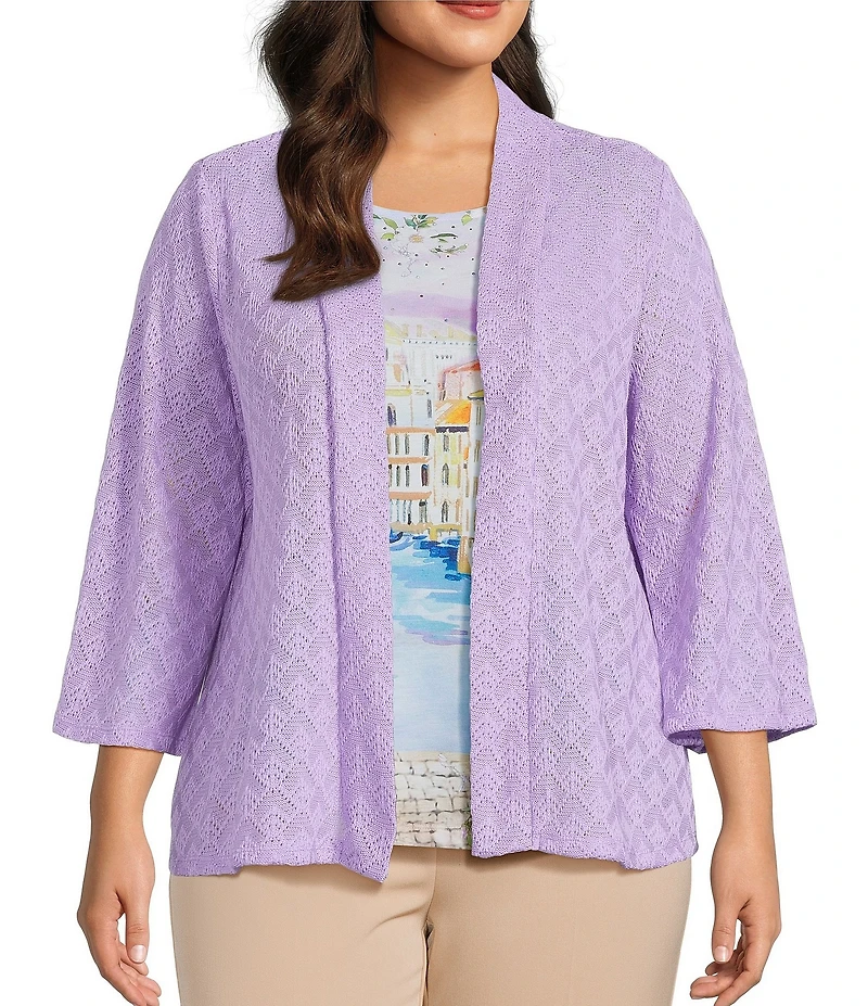 Allison Daley Plus Size 3/4 Sleeve Open Front Pointelle Cardigan in Chattanooga, TN