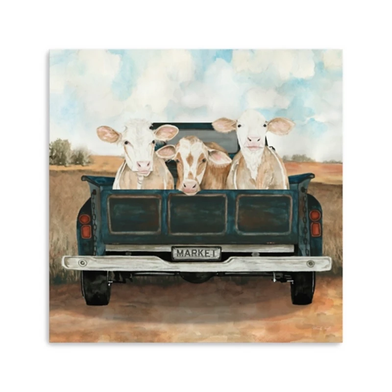 Join these cute cows on the adventure captured in our Along for the Ride Canvas Art Print. Its rustic beauty will make the perfect addition to modern farmhouse decor! Framed print measures 30L x 1.25W x 30H in. Giclee printed on stretched canvas Wrapped edges complete the look Features cows in the back of a pickup truck Hues of brown, white, blue, tan, gray, red, and green Artist: Cindy Jacobs Weight: 6.19 lbs. Hangs from back-mounted hardware Care: Dust with a soft, dry cloth. Avoid exposure to heat, sunlight, and moisture This item is available at Kirklands.com only, not available in stores. Please note: this item cannot be shipped to APO/FPO addresses.