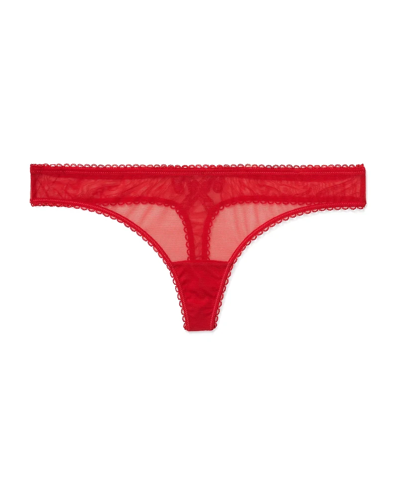 The Alyshia Thong Dark Red sheer-fabric thong is a playful twist on a classic silhouette. This style features Style: Thong Panty for a cheeky, kitschy vibe. (Available in sizes XS-XL.)