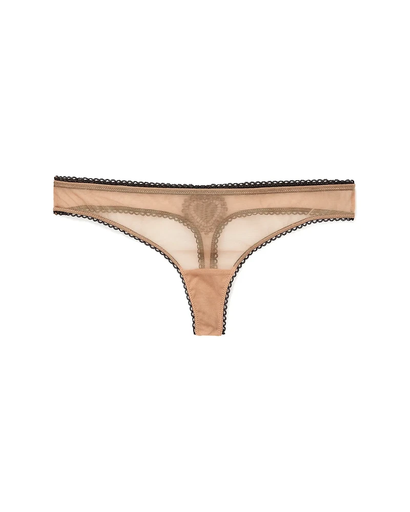 The Alyshia Thong Medium Beige 2 sheer-fabric thong is a playful twist on a classic silhouette. This style, designed for comfort, features Style: Thong Panty for a touch of cheeky charm. (Available in sizes XS-XL.)