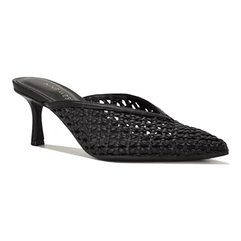 Stay fashionable in the Nine West Amelli mule dress pumps. Featuring a pointy toe, woven detailing and a tapered heel. This pump is the perfect wardrobe staple and is sure to impress! Founded in 1978, Nine West empowers women to take on the world in style, from day to night. -Material: Faux Leather Slip-on Imported Product Specifications 2.76 in. M Material Faux Leather