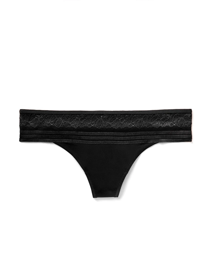 The Amellia Thong Black lace thong is a timeless essential for your top drawer. Effortlessly sleek and comfortable, this tailored-essentials style features Style: Thong Panty for a sleek, barely-there feel. (Available in sizes XS-XL.)