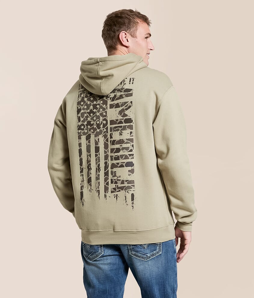 Camo flag graphic fleece lined sweatshirt Front pouch pocket 5% of Howitzer's proceeds from the sale of this garment goes to benefit the heroes that sacrifice to protect us
