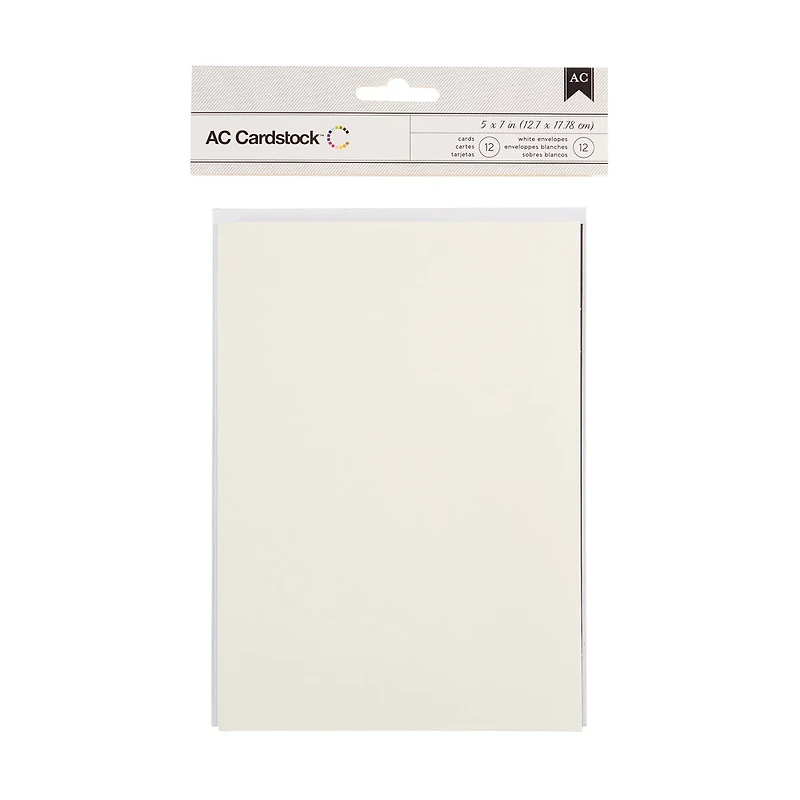 American Crafts Cardstock Cards and Envelopes, 5 in x 7 in, White, 12 Pack