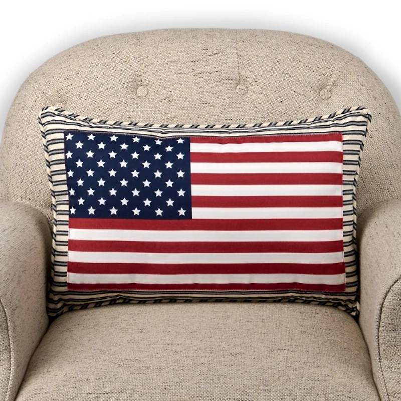 American Flag Ticking Stripe Lumbar Pillow