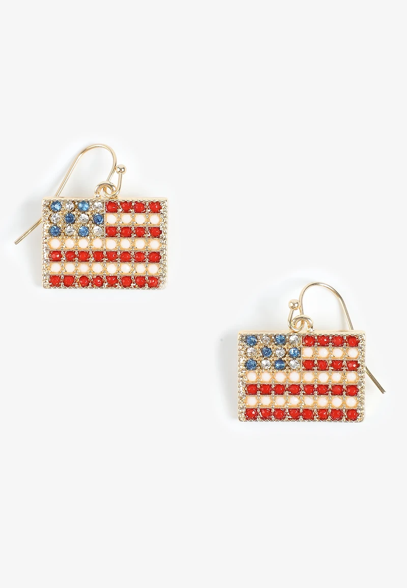 Bold yet playful, these Americana‑inspired earrings add instant personality to any look. A sparkling flag design comes to life through red, white, and blue beaded accents set in a gold‑tone frame, giving them a festive feel with just the right amount of shine. Lightweight and easy to wear, they’re perfect for summer celebrations, holiday weekends, or adding a patriotic pop to everyday outfits. Pair them with denim, easy tees, or breezy dresses for a fun finishing touch that feels spirited and statement‑making without going over the top.