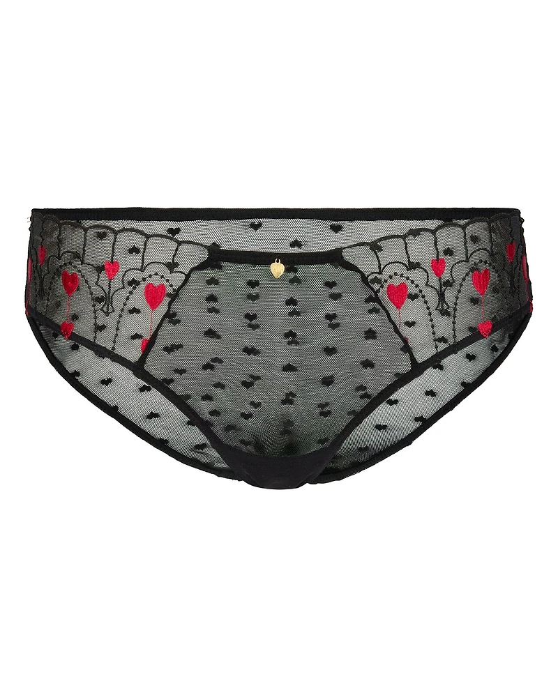 The Amorette Bikini Black with embroidery is a playful take on the classic bikini. This style features a pull-on design, Sheer, lightweight fabric, and Mesh inset. (Available in sizes XS-XL.)