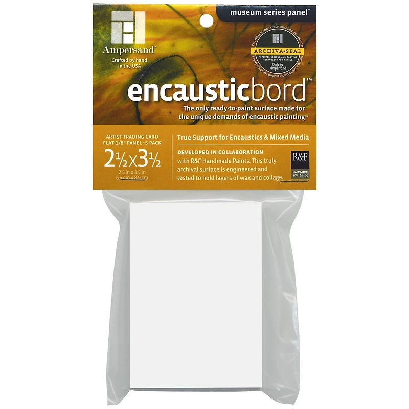 This board features a ready-to-use surface created for the unique demands of encaustic painting and mixed media. A heat-resistant ground is applied to a sealed Hardbord panel to form a bright, smooth and velvety surface. The ground is highly absorbent and it holds tight to layers of wax and collage without of cracking or separation. Use a variety of mediums to create incredible textures, colors and patterns. Details:White surface allows for vibrant color applicationAvailable in multiple sizesUncradled 1/8" flat profileExtremely receptive surface No preparation necessary, ready to useIdeal for for mixed media, collage and photo transfersContents:2.5" x 3.5" (5 pack)5" x 5" (4 pack)5" x 7" (3 pack)6" x 6" (4 pack)