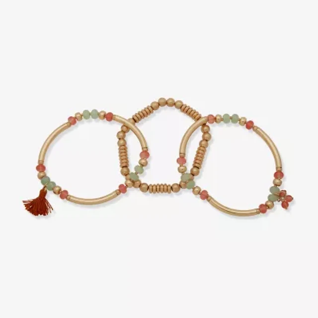 a.n.a Gold Tone Beaded Stretch Womens 3-pc. Bracelet Set
