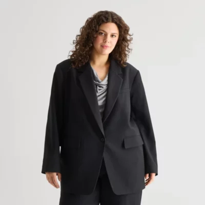 Look cool and polished wearing this stylish a.n.a women's plus oversized blazer. Made from stretch-twill, it has a slouchy relaxed-fit, notch collars, a single breasted design and front flap pockets. Wear it with a blouse and pants or a pencil skirt.
