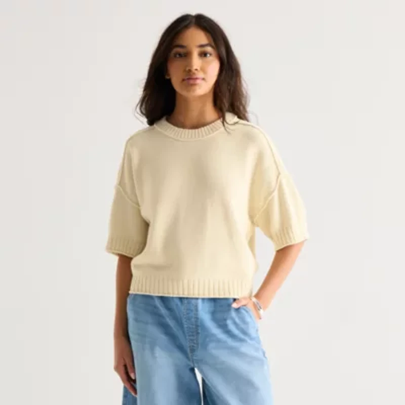 a.n.a Womens Crew Neck Short Sleeve Pullover Sweater