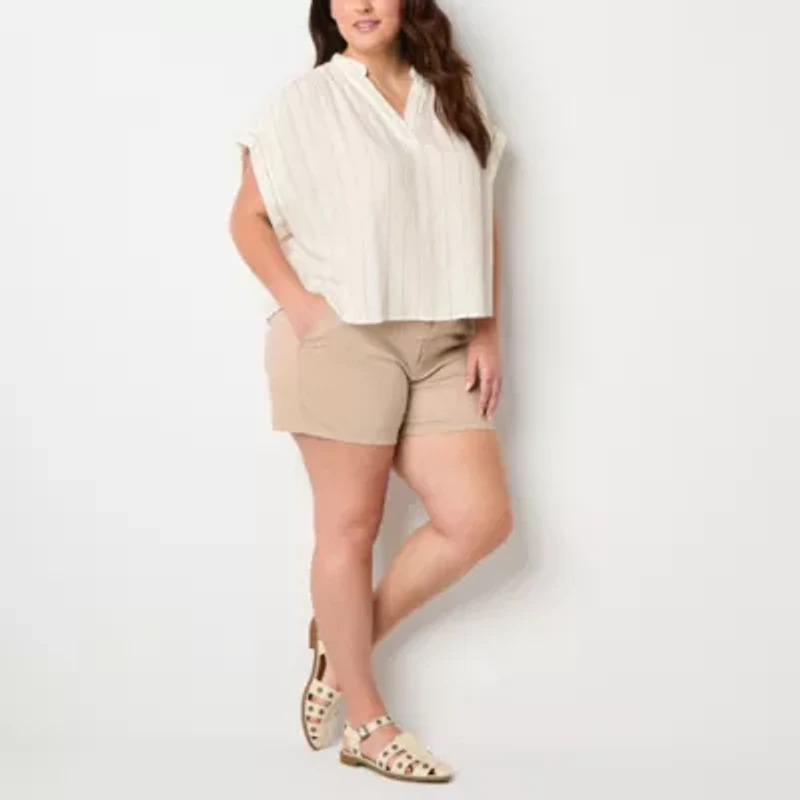 a.n.a Womens Plus Split Crew Neck Short Sleeve Blouse