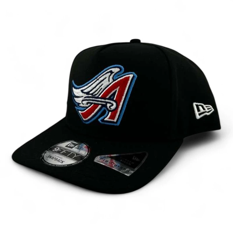 Rep your squad with bold style in the Anaheim Angels Black Basic Green UV 9FIFTY A-Frame Snapback Hat. The A-Frame refers to the front panel construction, which is structured and slightly more angular than a traditional cap. This provides a distinctive shape and a higher crown. This hat comes with a slightly pre-curved bill. The back has an adjustable snap so you can get the perfect fit.New Era A-Frame Snapback HatA-Frame Design – Features a structured front panel for a bold, modern fitHigh Crown – Offers a standout, elevated profileGreen Undervisor – Adds subtle contrast and reduces glareNew Era Branding – Signature flag logo stitched on the sidePre-curved bill