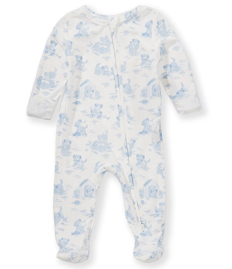Angel Dear Baby Boys Bamboo Puppy Toile Blue Zipper Footie Coverall