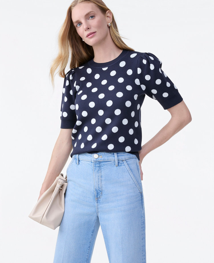 With a refined and flattering silhouette, this sweater tee boosts your wardrobe with a feminine appeal. Ribbed crew neck, cuffs and hem. Short sleeves, Imported:, Fit: Softly fitted, Length: 22"long, Fabrication: 100% Viscose, Garment Care: Machine Washable Dotted Sweater Tee by Ann Taylor Size Classic - 2XS Night Sky Women's Crew, Neck Short Sleeve Tanks Shells Sweaters 100% Viscose Machine Washable