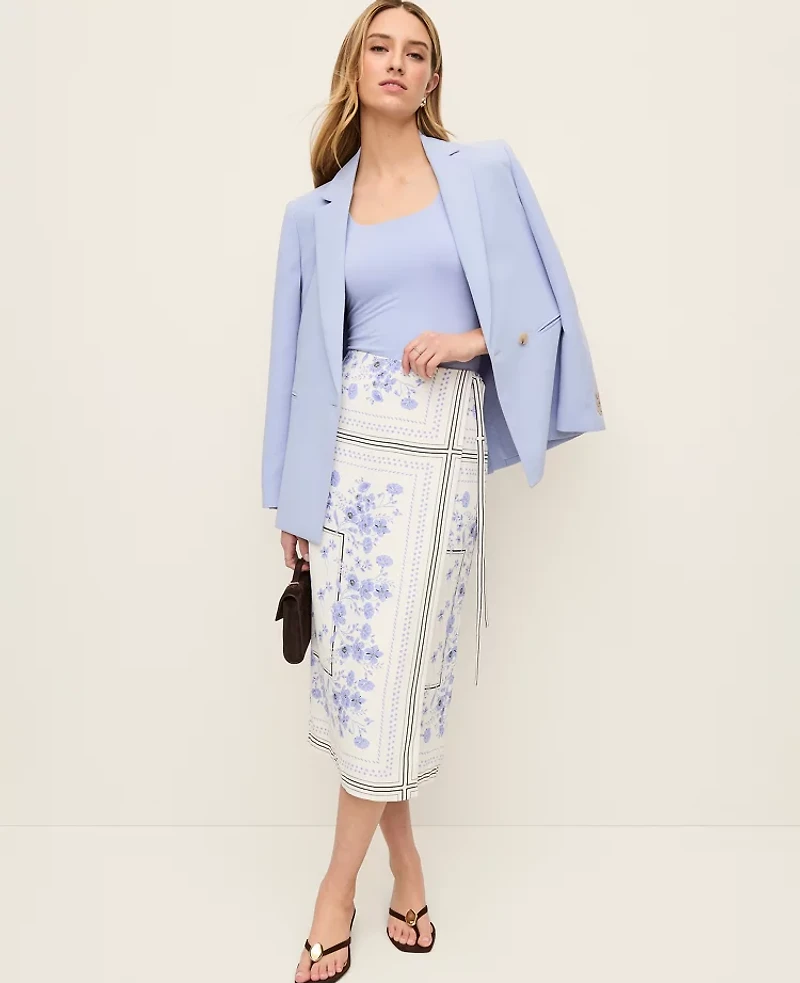 Ann Taylor Floral Wrap Midi Skirt Blue Hydrangea Women's