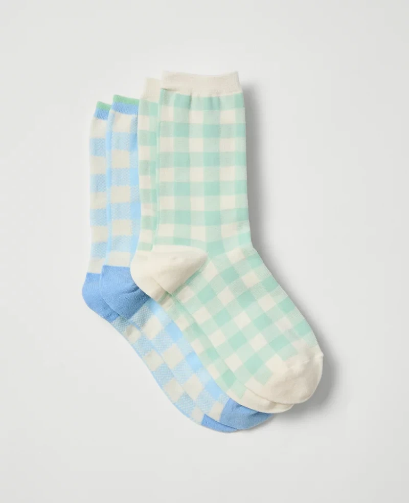 Ann Taylor Gingham Sock Set Aqua Foam Women's