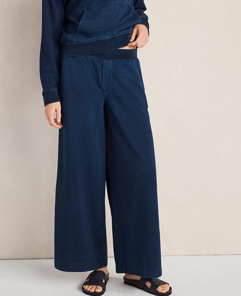Ann Taylor Haven Well Within Indigo Cotton Terry Wide Leg Pants Dark Women's