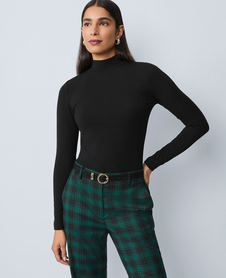 This infinitely wearable mock neck top is a cool - weather essential in a soft knit. Mock neck Long sleeves, Imported:, Fit: Soft & stretchy fit, Length: 24 1/2"long, Fabrication: 92% Rayon, 8% Spandex, Garment Care: Machine Washable Long Sleeve Mock Neck Top by Ann Taylor Size Classic - XS Black Women's Mock, Neck Long Sleeve Knits Tops 92% Rayon 8% Spandex Machine Washable