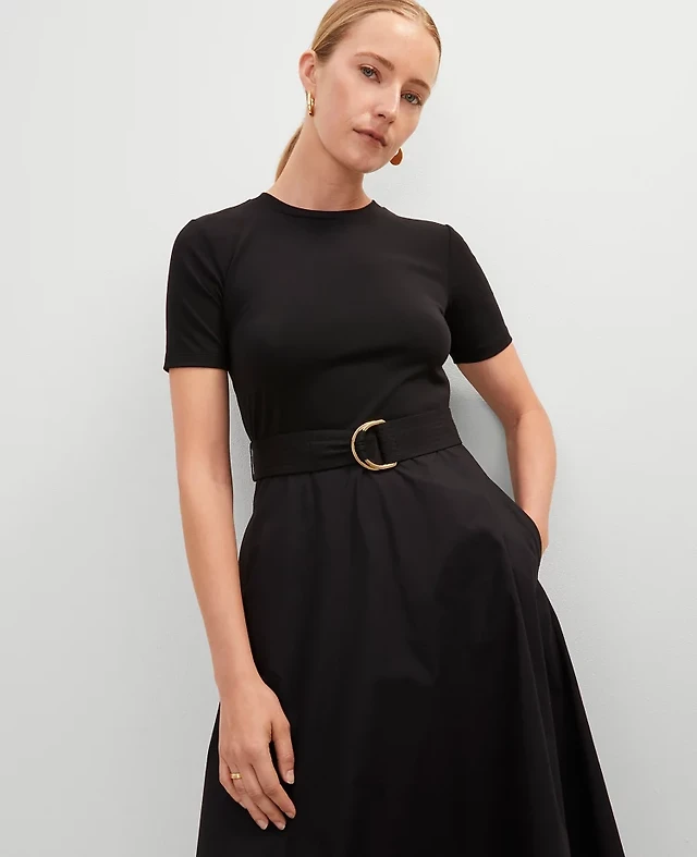 Ann Taylor Mixed Media Flare Midi Dress Black Women's