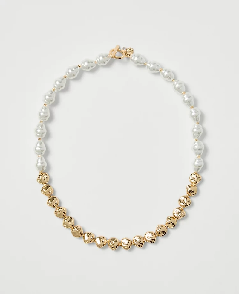 Ann Taylor Mixed Pearl and Metal Necklace Goldtone Women'sAnn Taylor Mixed Pearl and Metal Necklace Goldtone Women's