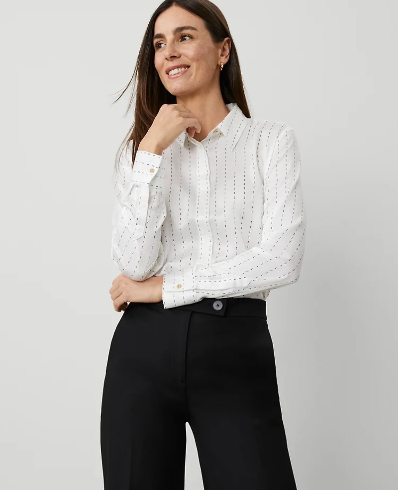 Ann Taylor Petite Dotted Slim Fit Shirt Winter White Women's