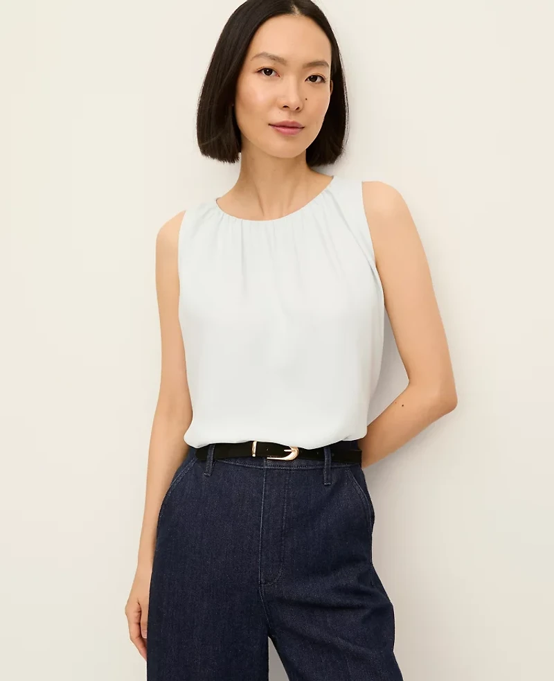Ann Taylor Petite Mixed Media Gathered Sleeveless Top Women's