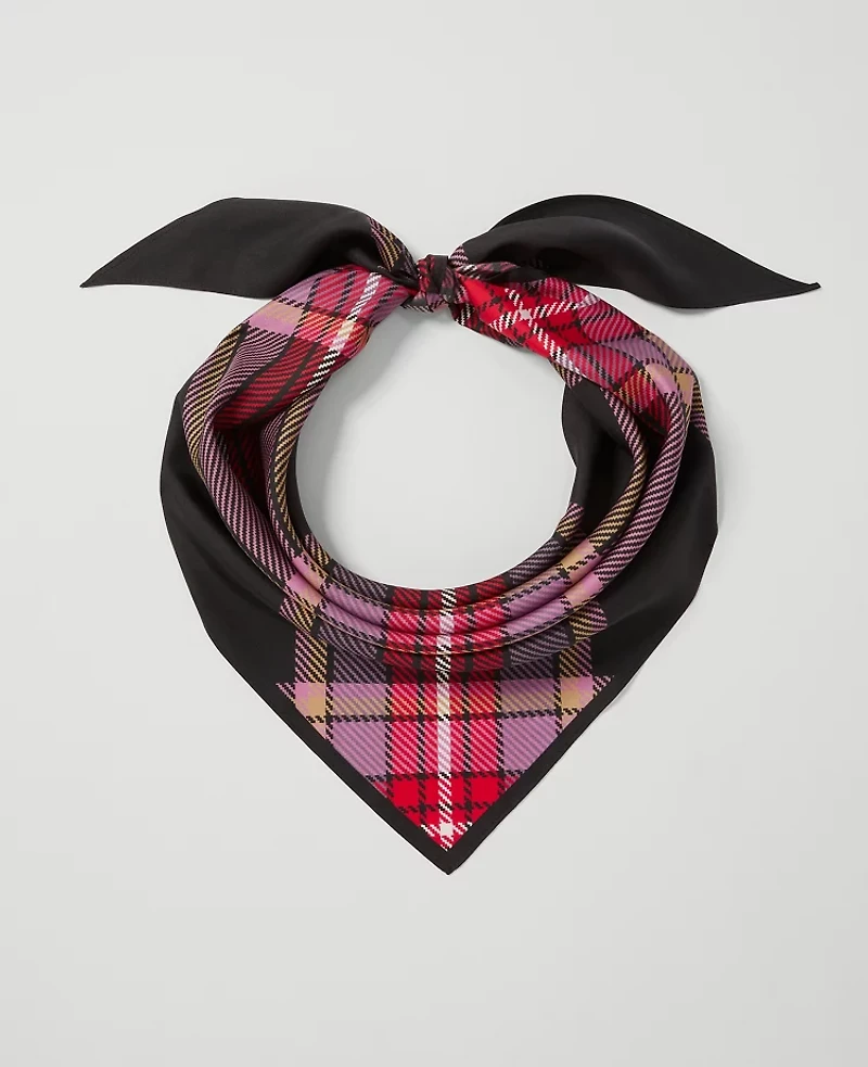 Ann Taylor Plaid Triangle Silk Scarf Black Women's