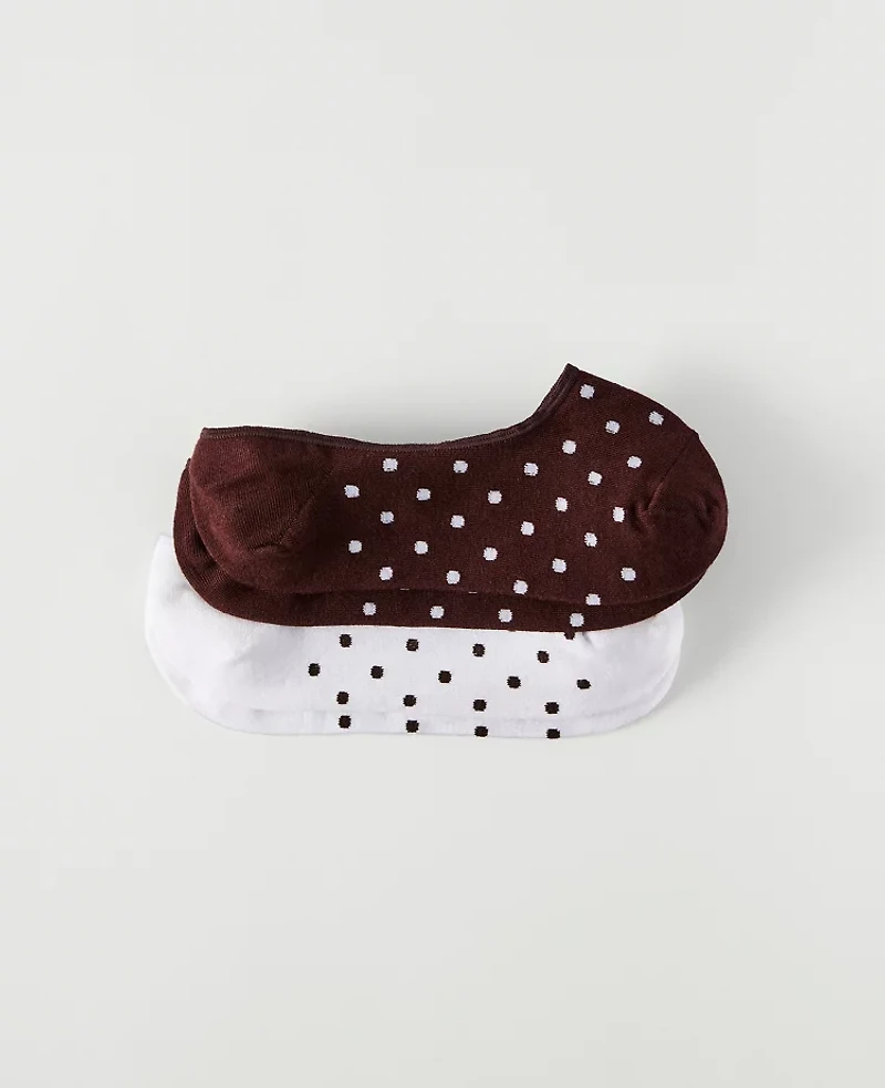 A perfect match of comfort and style, these no show socks are a go - to pair for the season. Includes two pairs., Imported:, Fabrication: 59% Cotton, 38% Polyester, 3% Spandex, Garment Care: Machine Washable Polka Dot No Show Sock Set by Ann Taylor Size Regular - One Size Winter White Women's Socks, Tights 59% Cotton 38% Polyester 3% Spandex Machine Washable