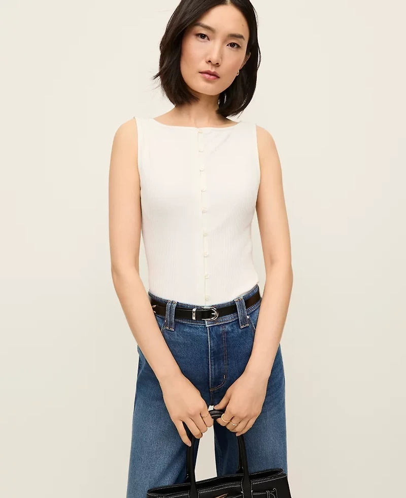 Ann Taylor Ribbed Sleeveless Button Top Women's