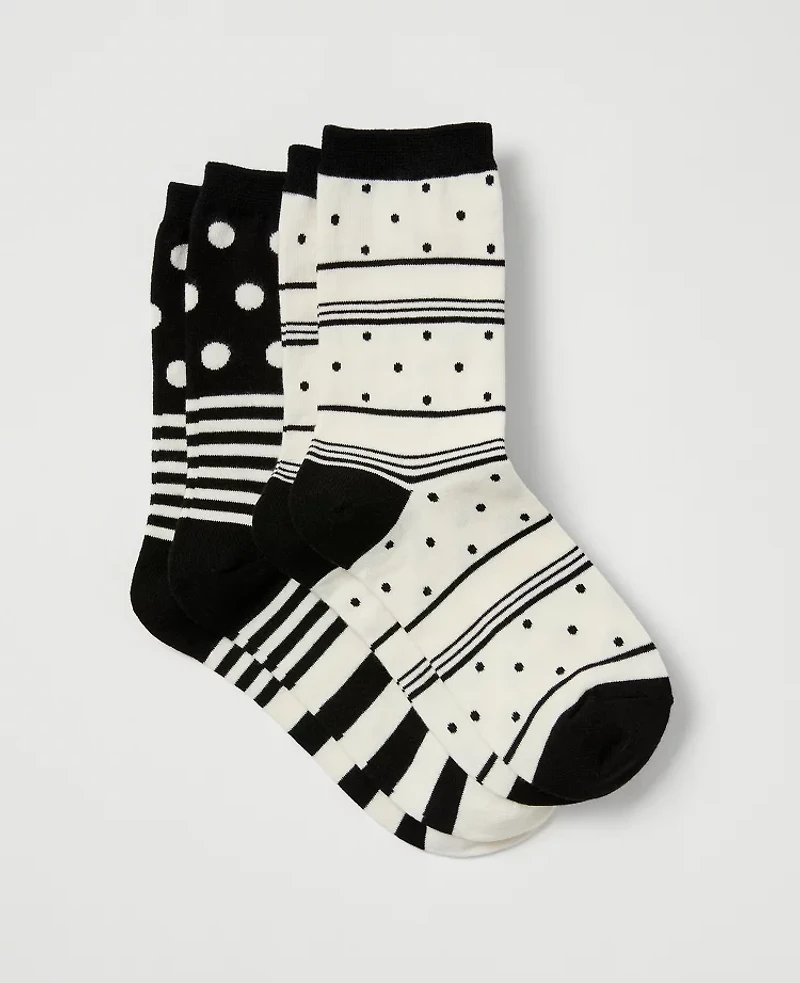 Ann Taylor Striped and Dotted Crew Sock Set Black Women's
