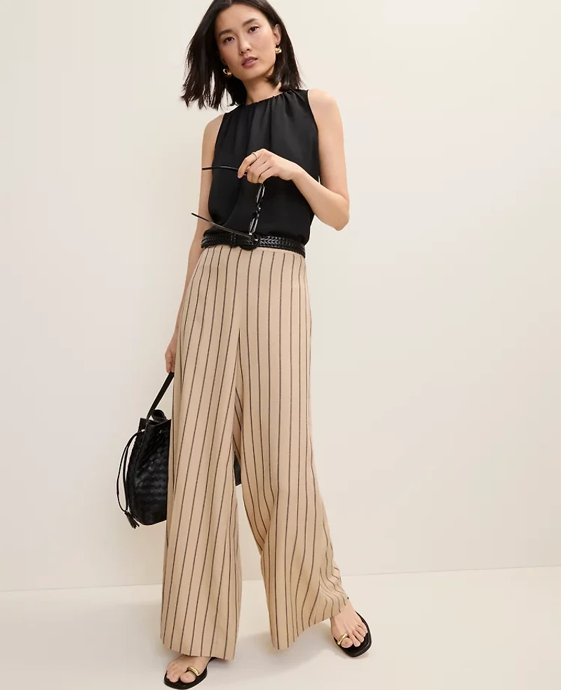 Ann Taylor The Statement Palazzo Pant Stripes Warm Burlap Women's