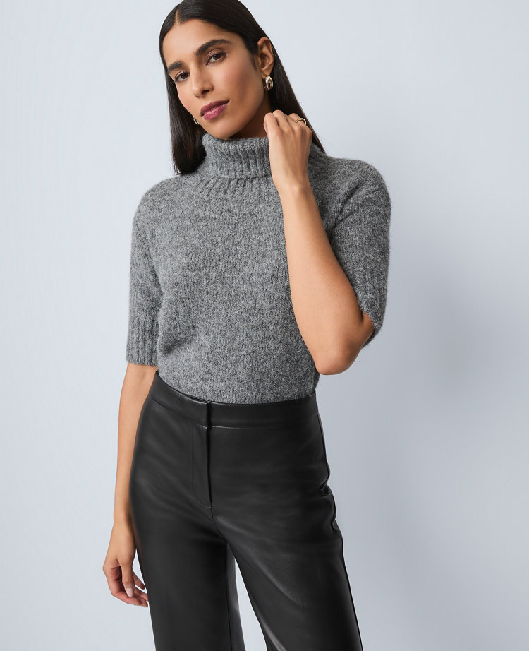 Topped with a flattering turtleneck, our refined sweater tee is one you'll want in every color. Turtleneck Elbow sleeves Ribbed neck, cuffs and hem., Imported:, Fit: Relaxed fit, Length: 21 1/2"long, Fabrication: 54% Cotton, 17% Acrylic, 15% Polyester, 12% Nylon, 2% Spandex, Garment Care: Machine Washable Turtleneck Elbow Sleeve Sweater Tee by Ann Taylor Size Classic - Small Charcoal Women's Cotton, Blend Turtleneck Short Sleeve Tees Sweaters 54% Cotton 17% Acrylic 15% Polyester 12% Nylon 2% Spandex Machine Washable