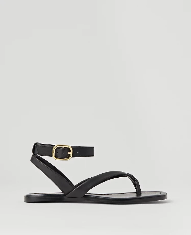 Discover Ann Taylor Weekend. Effortlessly polished pieces for wherever your plans take you. These leather sandals are instantly flattering with every outfit, thanks to their love - forever look and ankle - strap design. Adjustable buckle ankle strap. Padded footbed for comfort., Imported:, Fabrication: Leather Weekend Collection Buckled Ankle Strap Leather Sandals by Ann Taylor Size Classic - 7 1/2 Black Women's Flat, Sandals Footwear Leather