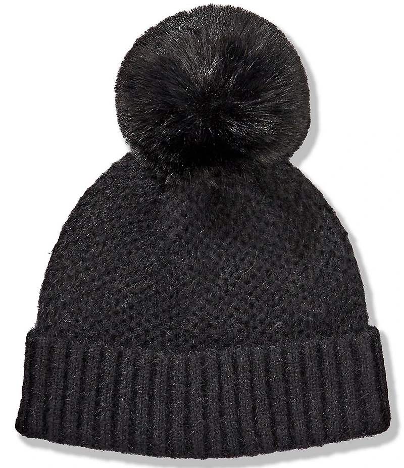 From Anna & Ava, this beanie features: 100% polyester Polyester faux fur pom Knit fabrication Approx. 7.25" L, opening 7.25" Imported.