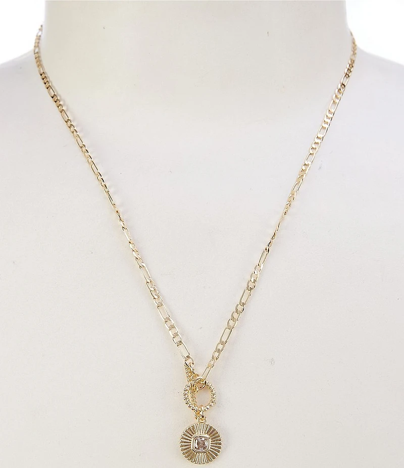 From Anna & Ava, this necklace features: Short pendant necklace Waterproof 18k gold plated brass with cubic zirconia stones Toggle closure Measures approx. 17.75" L + 3" extender Imported.