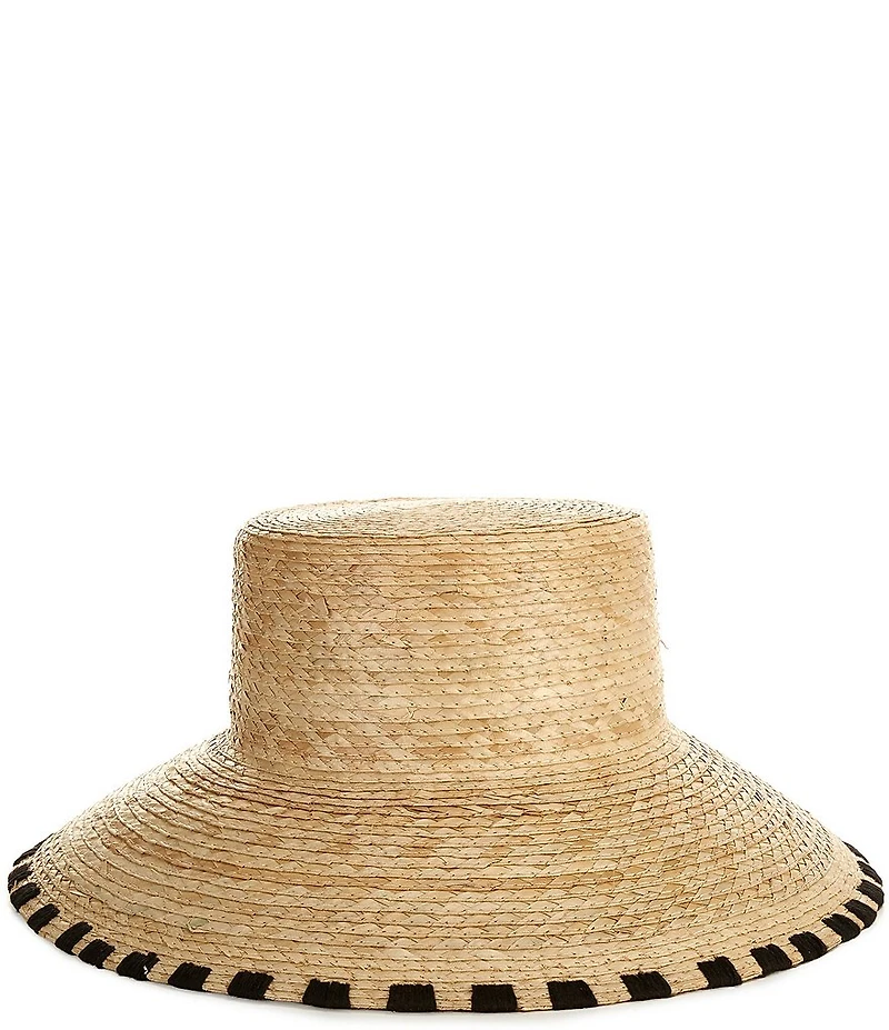 Anna & Ava Wide Brim Contrast Border Stitching Straw Sun Hat