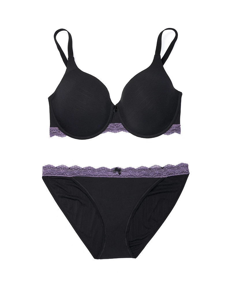 With coverage that doesn't sacrifice style, this full coverage bra features smooth cups, adjustable straps, and a pretty lace trim. It comes in black and can be paired with the matching hipster or bikini panty for a complete set. (Available in plus-sizes 38DD-46DDD.)