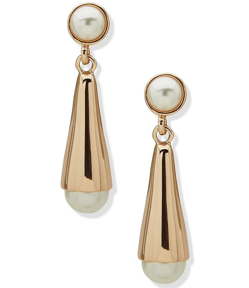 Anne Klein Gold Tone Pearl Cone Linear Earrings