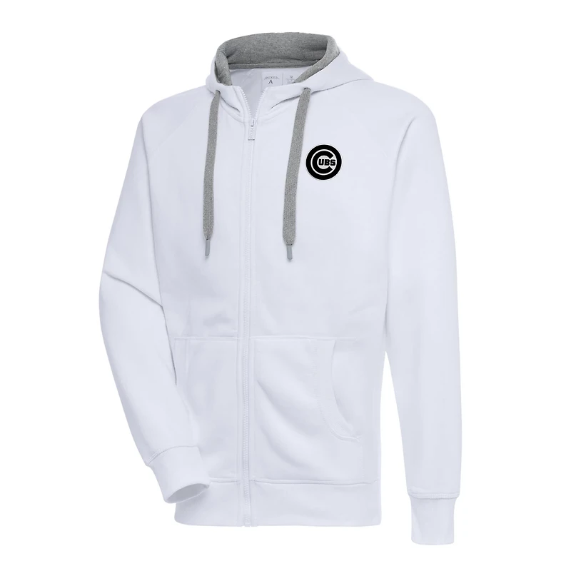 Celebrate your Chicago Cubs pride with this Antigua Metallic Victory Full-Zip Hoodie This midweight hoodie is perfect for chilly game days featuring embroidered Chicago Cubs graphics and a cozy fleece lining The raglan sleeves and rib-knit cuffs and hem provide a comfortable fit while the two front pockets keep your essentials close at hand This hoodie is perfect for any Chicago Cubs fan whether you're at Wrigley Field or watching the game at home