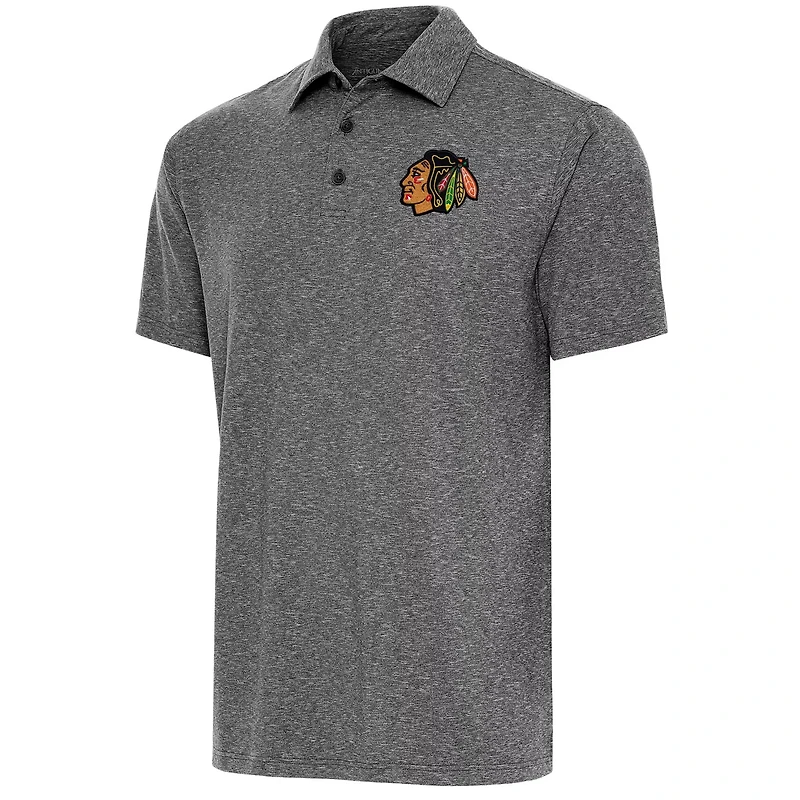 The Men's Antigua Heather Black Chicago Blackhawks Par Polo is a stylish and comfortable choice for any Blackhawks fan Its heat-sealed patch graphic proudly displays your team spirit while the self-fabric collar and side vents ensure a comfortable fit The three-button placket adds a touch of sophistication making this polo perfect for both casual and formal occasions Whether you're cheering on the Blackhawks at the United Center or just showing your support around town this polo is sure to turn heads