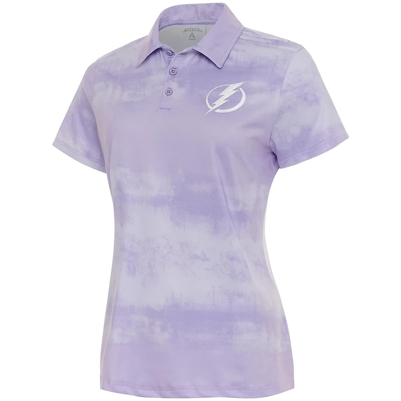 Embrace the spirit of the Tampa Bay Lightning with the Women's Antigua Heather Purple Tampa Bay Lightning White Logo Render Polo This stylish polo features a self-fabric collar and three-button placket for a classic fit The embroidered Tampa Bay Lightning logo proudly displays your unwavering support for the team Crafted from a blend of polyester and spandex this polo offers both comfort and durability making it the perfect choice for cheering on your favorite players or showcasing your team spirit