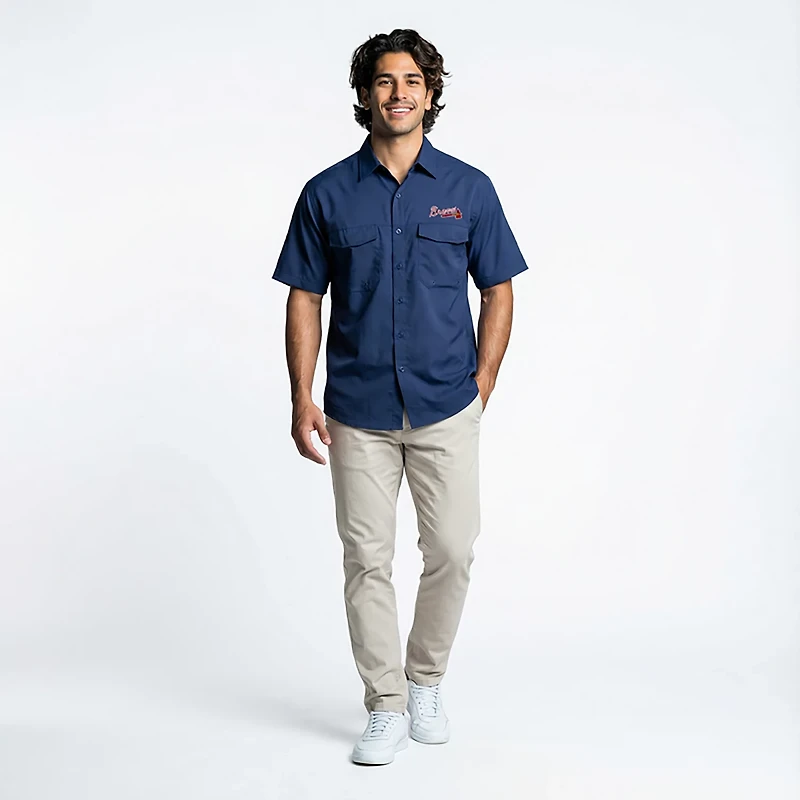 Antigua Men's Atlanta Braves Game Day Woven Fishing Shirt