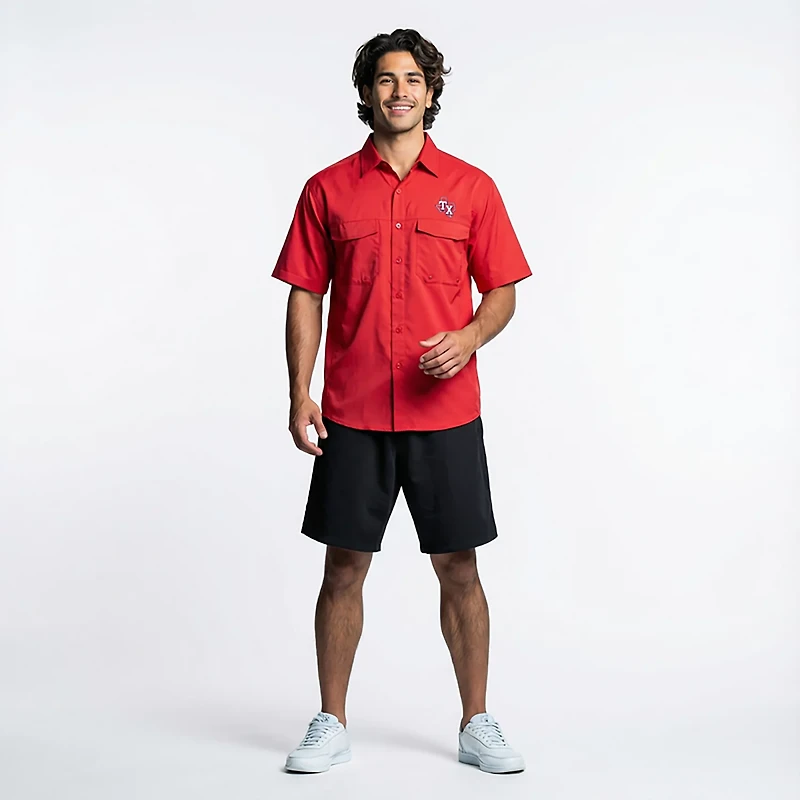 Antigua Men's Texas Rangers Game Day Woven Fishing Shirt